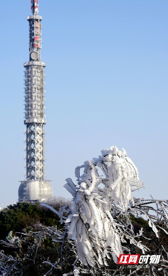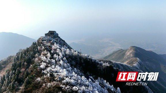 [南岳衡山:雾凇奇景醉游人]受12日下午南下冷空气带来的雨雾影响,衡山一夜“白头”。12月13日,雨后初霁的南岳衡山风景区迎来雾凇盛景,大批游客慕名前来打卡赏景。#早安,湖南#